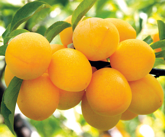 Ежегодный обильный урожай, собирают до 60 кг с одного дерева. Плоды массой 20-25 г, удлиненные, яркие, оранжевые, с нежным ароматом. Желтая мякоть сочная, с гармоничным кисло-сладким вкусом. Слива великолепна и в свежем виде, и в компотах, и в варенье. Дерево с плакучей кроной в плодоношение вступает на третий год, очень зимостойко. Яркие плоды так плотно облепляют ветки, что кажется, что это не сливы, а ягоды гигантской облепихи.