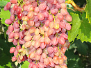 Розовые, а на солнце багряные виноградины сразу вызывают желание их съесть. Удлиненные грозди до 1000 г, со сладкими ягодами без косточек. Мясистая сочная мякоть с ароматом муската и сахаристостью до 21 %. Кожица плотная, поэтому грозди хорошо переносят транспортировку и могут долго храниться в прохладном месте. Сорт очень урожайный, чтобы не сломалась лоза, нормируйте количество завязей.