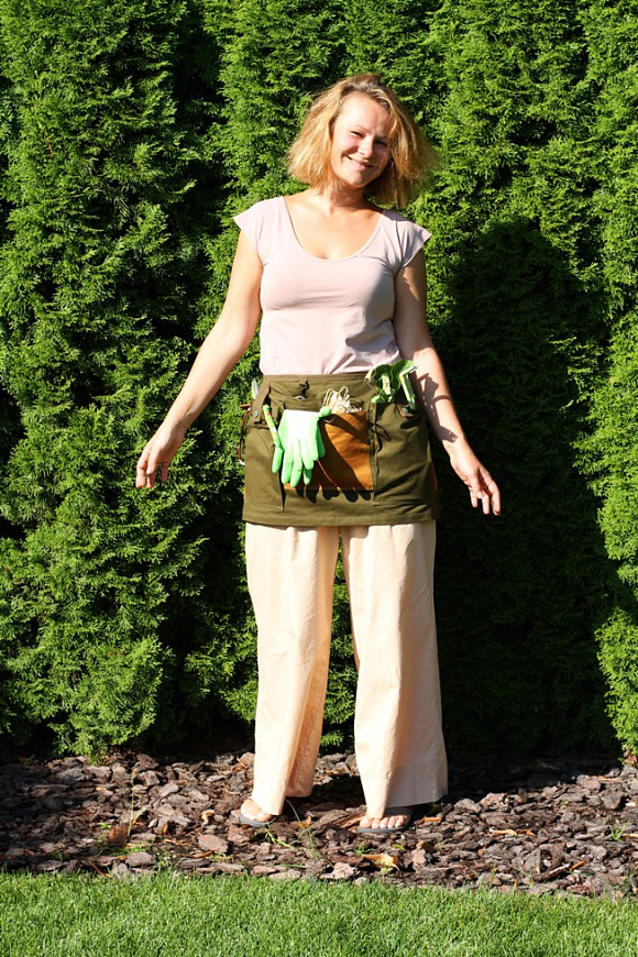 Есть и еще одно полезное назначение. Хранить нужный набор инструментов можно прямо в фартуке-органайзере. После работы просто повесьте фартук на вешалку и ничего не потеряется до следующего раза.
