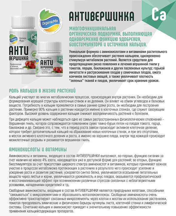 Уникальная формула с аминокислотами и витаминами растительного происхождения обеспечивает растения кальцием, одновременно стимулируя метаболизм растений.
