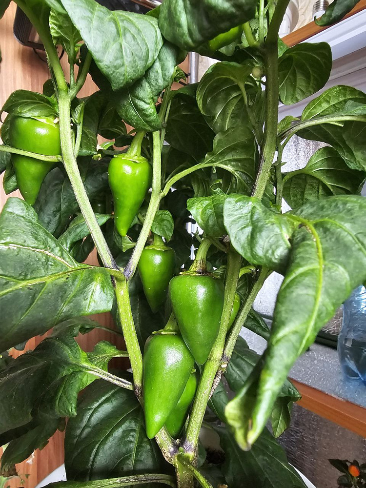 Рос на подоконнике и на стелаже под лампами. Рос, радовал глаза. Плодов много, размер от 4-7 см. Семян внутри, как в большом перце. На вкус на любителя.