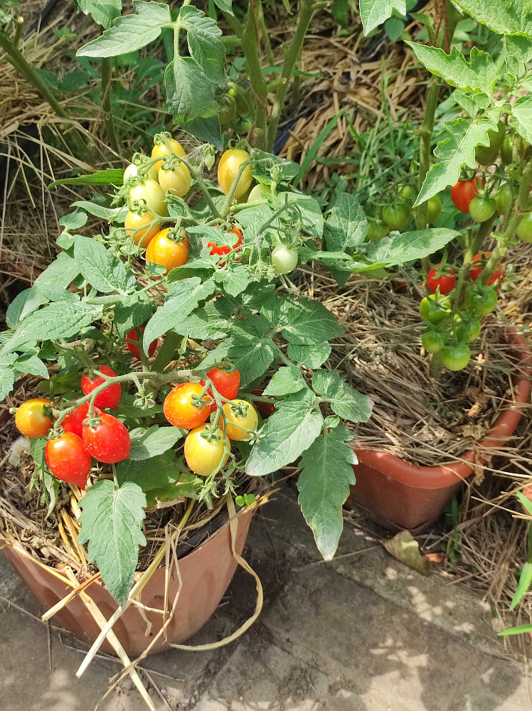 Дополню отзыв фото. Первый урожай сняли, помидорки растут ещё из кисточек. Вкусный!