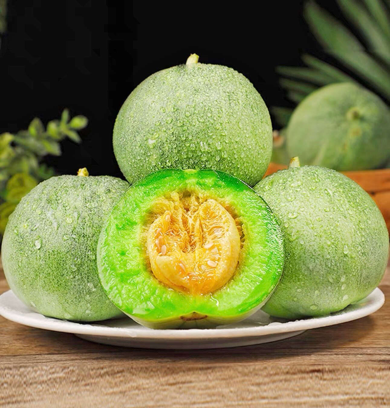 зрелые округлые плоды своим темно-зеленым в белую полоску окрасом напоминают арбуз, однако вкус у них как у настоящей сахарной ароматной дыни! Мякоть сочная, сладкая, сливочного цвета с небольшим содержанием семян. Огурдыню можно есть свежей и вяленой, или готовить цукаты, джем, варенье, компот или повидло. Гибрид отличается стабильной и высокой урожайностью, на одном растение формируется до 20 плодов! Они могут храниться до 50 дней. Огурдыня не подвержена болезням огурцов и плодоносит до заморозков. Не прихотлива в уходе