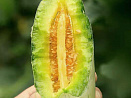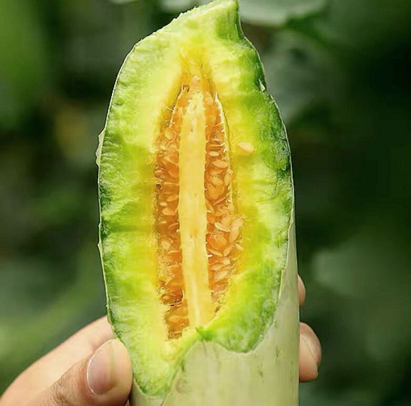 Семена приобрела у вас на сайте.Сажала в 2023году впервые,как диковинку попробовать. Посадка через рассаду в апреле. Посадила в парник к огурцам,так же подвязала и поливала. Растение неприхотливо в уходе. На одном растении завязалось 5 плодов .Очень интересно было когда цвел: каждая завязь была как бы обернута прилежащим листом. Ждали с нетерпением,что же вырастет,когда созреет...Выросли,действительно, удивительные плоды: с виду невзрачные,вытянутые, а на разрезе красивая оранжевая сердцевина с семенами, как на картинке, мякоть нежно зелёная хрустящая,сладкая на вкус и ,действительно ,дынный вкус и аромат! Шкурка очень тонкая.