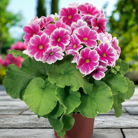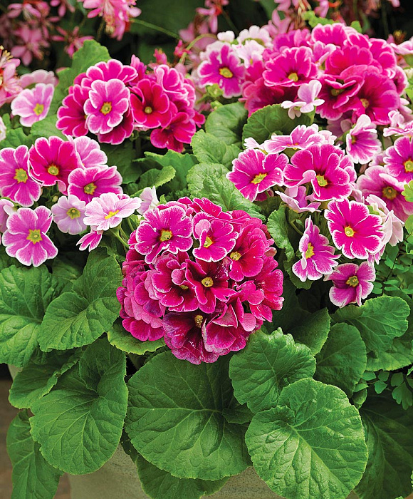 Великолепная серия гибридов с непревзойденными декоративными качествами. Растения не содержат примина: нет риска получить раздражение кожи при прикосновении к листьям. Цветёт очень обильно. Цветки большие, в диаметре до 6 см, зеленоглазые, лучистые. Лепестки изумительных оттенков, волнистые по краю.