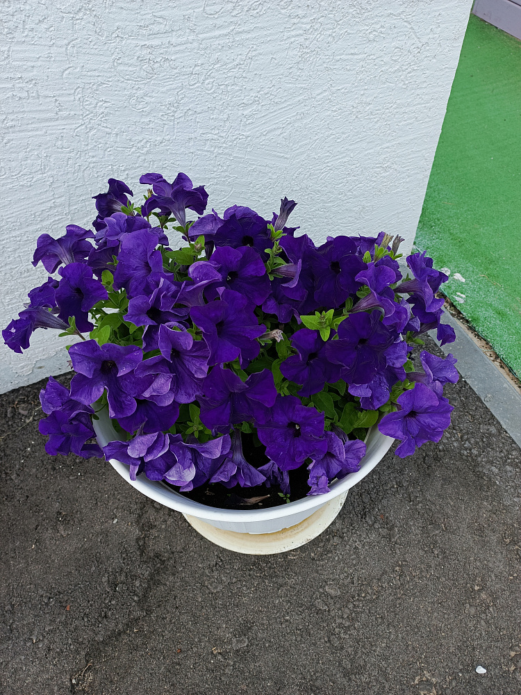 УХОД ЗА ПЕТУНИЕЙ В ГРУНТЕ. Уход за петунией в грунте заключается в регулярных умеренных поливах. В прополках и рыхлении она нуждается до того момента, пока она не заполнит собой сплошным ковром весь отведенный ей участок. Отцветшие цветки нужно своевременно удалять и за сезон несколько раз провести стрижку растений, после каждой стрижки петуния порадует вас вновь обильным кущением и цветением. Подкормки петунии, растущей в грунте в цветниках, нужны раз в 20 -30 дней любым минеральным комплексом для цветочных культур, предпочтительнее кормить по листу. Для петунии в клумбах с ограниченным объемом грунта, например клумба в шине, питание дают раз в 10 -14 дней. Для петуний, высаженных в небольшие кашпо или цветочные горшки, питание дают раз в 7 дней. Объем грунта в цветочном кашпо слишком мал, что бы надолго обеспечить обильное цветение без подкормок. Ампельные петунии любят покушать чаще всех, их кормят раз в 5 дней.