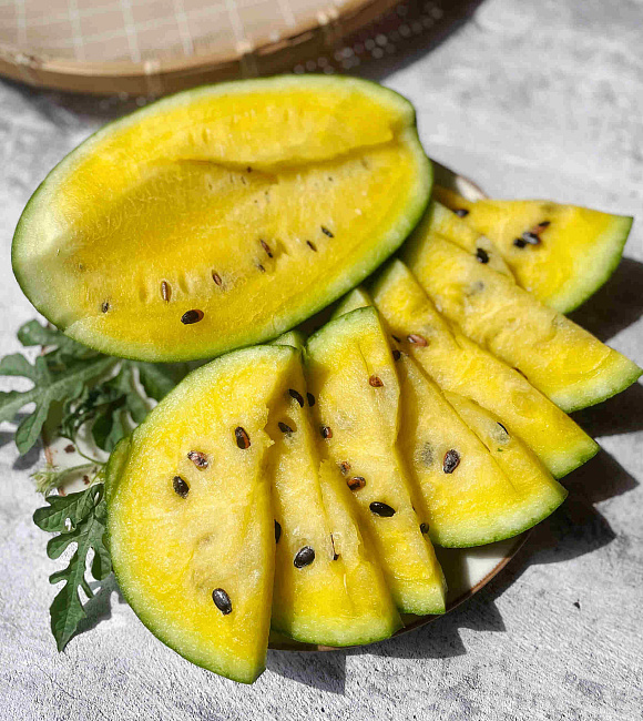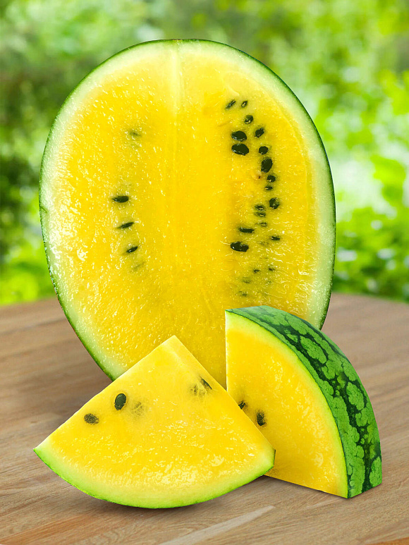Арбуз 10/10. Форма вытянутого яйца, окрас светло зеленый, кожура тонкая, мякоть желтая, сочная и очень сладкая. Много семян. Выращивала в ХМАО, в теплице, без прививки. Вкус невероятный, это тот арбуз, который хочется обязательно повторить!
