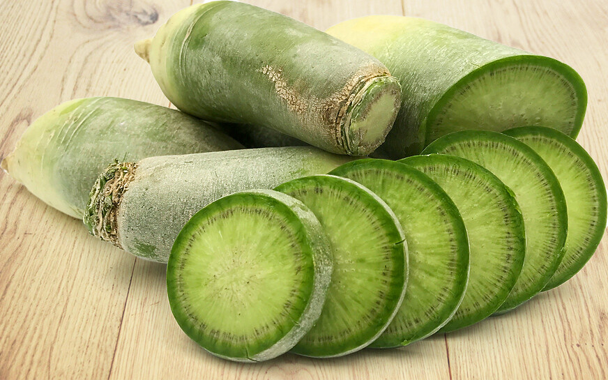 Этот гибрид очень популярен в странах восточной Азии. Корнеплоды отличаются характерным прекрасным вкусом. Они приобретают по-настоящему внушительные размеры до 25 см в длину и 6 см в ширину. Кожура и мякоть имеют выразительный зеленоватый окрас.