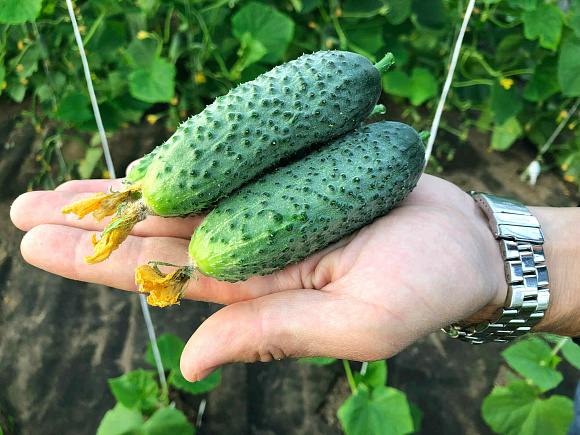 Невероятный красавец Гоша. Передовой ультраскороспелый партенокарпический гибрид с букетным типом цветения и потрясающей урожайностью – на верхней части куста огурцов так же много как и на нижней. Плоды среднебугорчатые, цилиндрической формы, длиной 10-12 см, глубокого зеленого цвета. Тонкая кожица, генетически без горечи. Семенная камера практически отсутствует. Вкусовые качества просто изумительные. Растение компактное, со средней силой роста. Корневая система хорошо развита и надежно держит груженое плодами растение. Теневыносливый – можно садить глубоко в теплице. Очень хорошая устойчивость к стрессовым условиям произрастания. Возможно выращивание прямым посевом в грунт. Устойчив к листовой пятнистости, мучнистой росе, вирусу пожелтения сосудов огурца и вирусу обыкновенной мозаики огурца.