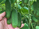 Эталонные огурцы, хрустящие и упругие, с отличным вкусом и нотками сладости, без тени горчинки, с приятным ароматом. Зеленцы имеют веретеновидную форму, выровненные, длиной 10-11 см. Темная кожица помогает плодам дольше сохранять товарные качества при хранении. Гибри-партенокарпик отличается не только коротким вегетационным периодом, а значит урожай подоспеет в рекордные сроки, но и по-настоящему обильным плодоношением. Растение имеет высокий иммунитет к бурой пятнистости и настоящей мучнистой росе. Лучше всего зарекомендовал себя в закрытом грунте, где дает максимальный урожай.