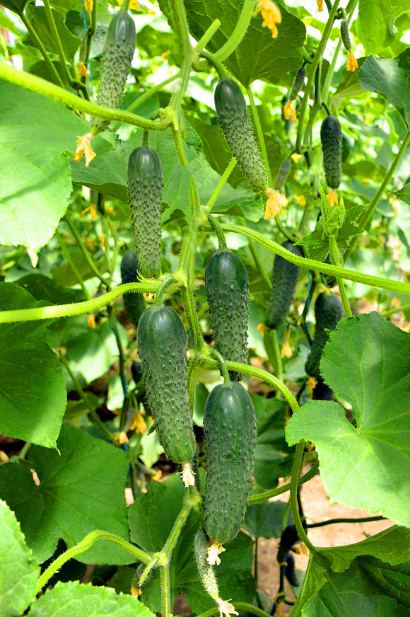 Суперпучковый партенокарпик. Сверхвыносливый, не страдает метеозависимостью. Можно просто посадить и практически о нем забыть. Формирует крепкий стебель с несильным боковым ветвлением. После букетного периода почти под каждым листом появляются 3–4 завязи. Зеленцы бугорчатые, хрустящие и ароматные, длиной 12–14 см. Всего несколько таких растений могут обеспечить всю семью огурцами, и еще останется.