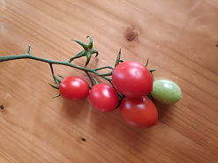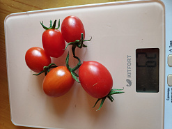 Куст в теплице больше метра, помидорчиков много, пасынковала, потому что , слишком много было пасынков, начали созревать в июле, все плоды ровные, глянцевые, вкус томатный