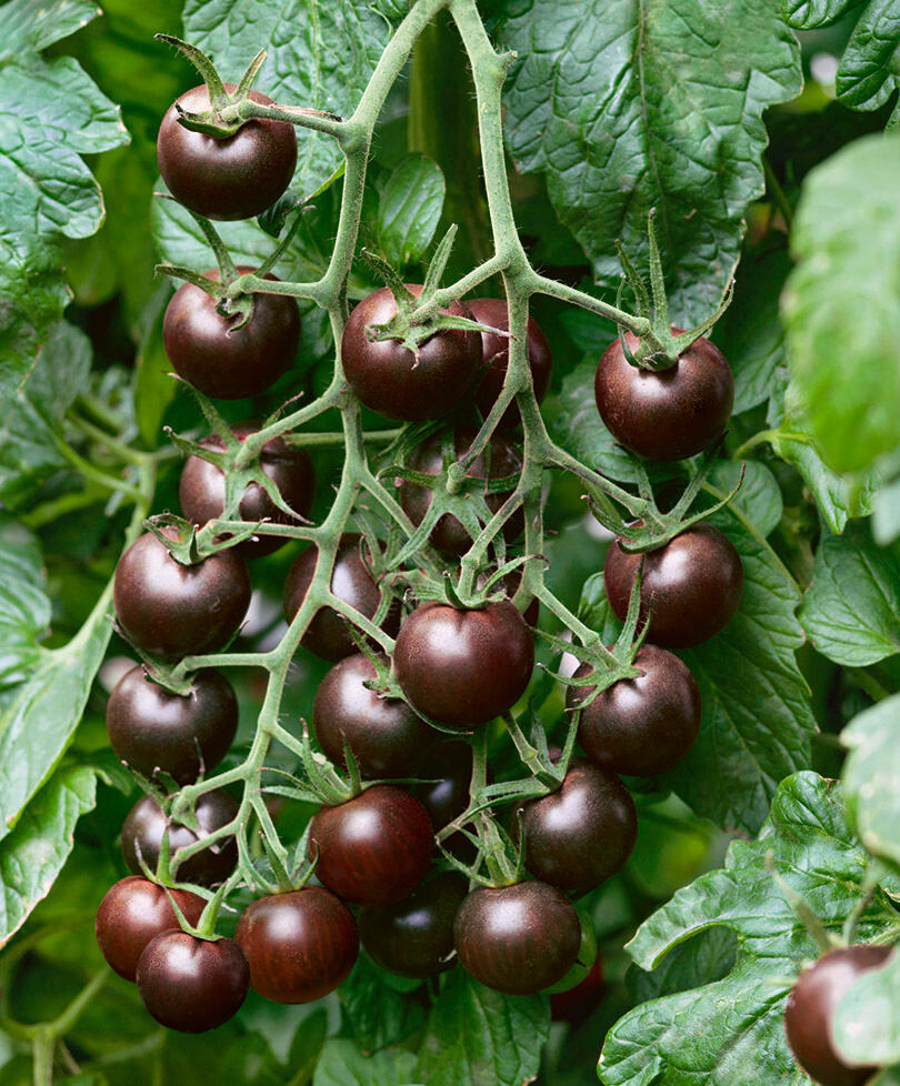 Гибрид раннеспелый. Плоды глубокого угольно-черного цвета. Кисти не очень длинные по 6-8 помидорок, которые хорошо созревают на кусте. Вкус очень приятный, сладкий. Удивительно смотрятся в салатах и закусках, внешне напоминая крупные маслины. Растения индетерминантные, теплолюбивые. Устойчивы к болезням. Недостаток питательных веществ может привести к потере черного цвета.