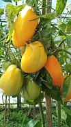 Вечерний костер в столице страны детства - как одна из традиций, связанных с мечтой. "Наш любимый артек, не забудем вовек!", помните? :) Крупные удлиненные "ракетки" с носиком, до 15 см длиной, с оранжевым помидорным "мясом" внутри. Семян в плодах мало, на разрезе зернистые. Сорт Костер Артека индетерминантный, высокорослый, имеет очень длительный период плодоношения. Универсальный в использовании. Урожайность - свыше 3,5 кг с куста. Пасынкуем как обычно.
