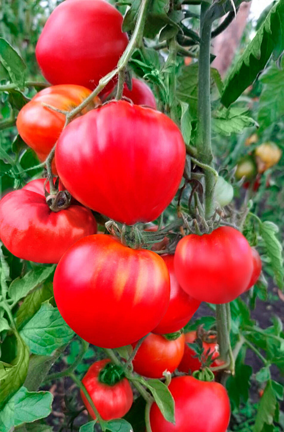 У биф-томатов необходимо регулировать количество завязи в кистях. Всего в кисти нужно оставить 3-4 плода, остальные цветы отщипнуть. Тогда помидор будет действительно крупным.