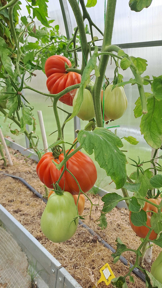 У биф-томатов необходимо регулировать количество завязи в кистях. Всего в кисти нужно оставить 3-4 плода, остальные цветы отщипнуть. Тогда помидор будет действительно крупным.