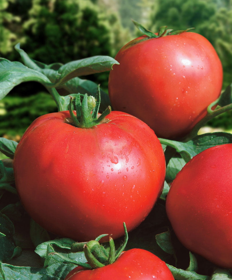 Действительно любимчик. В этом томате все замечательно. Рассаду ни с какой другой не спутаешь, мощная, коренастая. Томат хоть и индетерминантный, но подходит для невысокой теплицы. Плоды круглые, розовые, без прожилок. Очень напоминают знаменитое Бычье сердце.