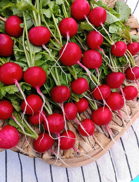 Редис – не просто ранний хрустящий деликатес. В ярких сочных корнеплодах содержится полный набор витаминов, горчичное масло, обладающее противомикробным действием, биологически активные антоцианы, известные своими антиоксидантными свойствами, укрепляющими ослабленный иммунитет.