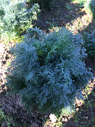 Среднепоздний сорт укропа карликового типа. Образует плотную розетку из резных листьев с широкими долями темно-зеленого цвета с сизым налетом и высокой ароматичностью. Очень медленно переходит к стеблеванию. Вкусовые качества высокие.
