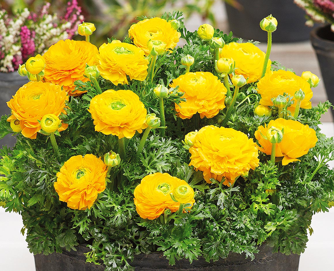 Посадка. В первых числах апреля приступают к посадке клубней лютиков в горшки с почвенной смесью диаметром 10 см. Перед этим их замачивают в растворе марганцовокислого калия или фундазола, чтобы обезопасить от любых болезней. Клубни заглубляют в землю на 5 – 6 см. В качестве посадочного грунта используют готовую смесь для цветочных культур. Горшочки выставляют на окно, чтобы они хорошо прогревались солнцем. Поливают не чаще 2 раз в неделю.