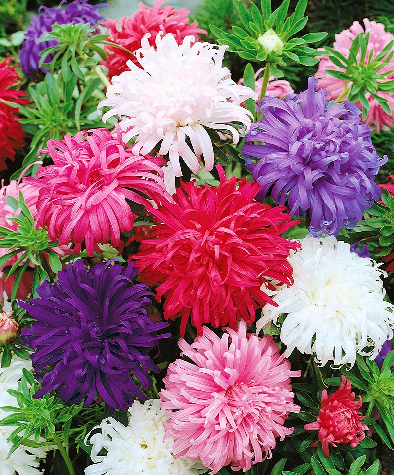 ВЫСАДКА РАССАДЫ АСТРЫ В ЦВЕТНИКИ. Астра – холодостойкий цветок и высаживать ее в цветники и клумбы у нас на Урале можно уже после 20 – 25 мая. Южанам и того раньше, в конце апреля в начале мая. Грунт под астры нужен легкий, воздушный, хорошо заправленный компостом 2 -3 летней давности фосфорно-калийными удобрениями. Категорически запрещается вносить под астры свежий навоз. Астры нельзя высаживать на то же самое место, где росли астры прошлым летом. Схема посадок: 20 см для карликовых астр между кустами, и 30 – 35 см между высокорослыми кустами. Ведь каждый куст формирует от 12 до 30 (в зависимости от вида) мощных цветоноса, а для этого нужна и площадь питания соответствующая и обеспечение светом. При более тесных посадках астры теряют свою декоративность и вытягиваются, при более просторных посадках кусты не поддерживают друг друга и полегают. В течение вегетации уход за астрами заключается в поливах, прополках, рыхлении и подкормках.