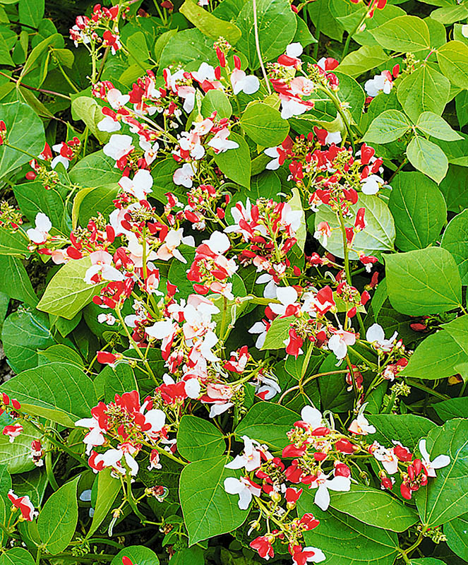 Шикарная густо-зелёная лиана, украшенная яркими алыми, искрящимися белыми и двуцветными (красно-белыми) цветками, собранными в рыхлые крупные кисти. Осенью созревают коричневые бобы с пламенными пурпурными, красными и белыми семенами.