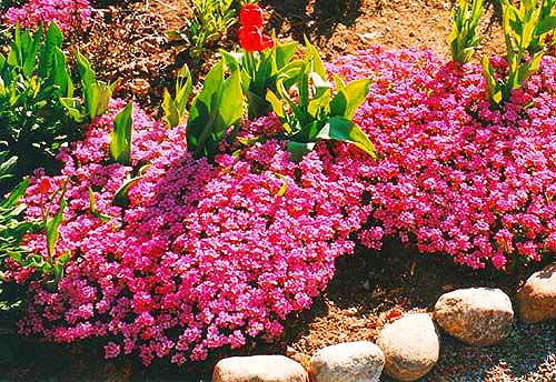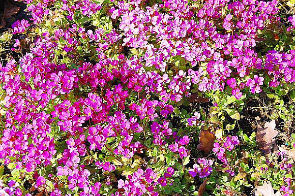 Вечнозелёное растение. Цветы насыщенно-розовые, немахровые, появляются рано весной, в апреле-мае. Цветение настолько обильно, что листья совершенно не видны под бесчисленными цветами. Используют для групповых посадок на альпийских горках или вдоль дорожек. Растения холодостойки, светолюбивы, переносят легкую тень. Почва необходима плодородная, хорошо дренированная, рыхлая. Цветут уже в год посадки.