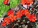 Цветки собраны в крупные щитки, которые горят огнём. Пожалуй, такого ярко-красного цвета нет ни у какого другого цветка. Рекомендуем посадить его в палисаднике рядом с белыми флоксами или ромашками.