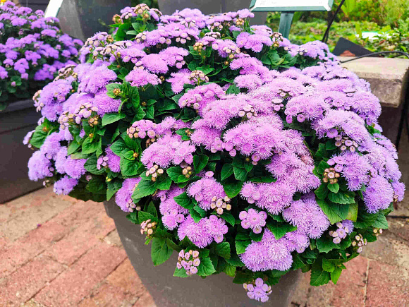ВЫСАДКА АГЕРАТУМА в цветники. Высаживают агератум после угрозы возвратных заморозков по схеме 20 - 25 см друг от друга. Учитывайте, что этот цветок обильно разрастается и куститься в стороны, для этого ему нужно достаточно пространства. Почва для агератума на клумбах и цветниках должна быть рыхлая, воздухопроницаемая,плодородная. Навоз растение не переносит, но хорошо растет на грунте, заправленным перепревшим перегноем и минеральными удобрениями,например Фертика цветочное, Фертика весна –лето : 40 - 60 гр на 1 кв. метр. Агератум – не высокие растения и при совмещенных посадках в цветниках располагать их нужно ближе к бордюрам. УХОД за агератумом в цветниках заключается в регулярных поливах, прополках, рыхлении и подкормках. Подкормки так же как и для астры, для обильного цветения нужны раз в 5 – 7 дней. Следует избегать органических подкормок навозом и настоями трав, от таких подкормок будет много зелени, но мало цветков. Предпочтение нужно отдать минеральным подкормкам.