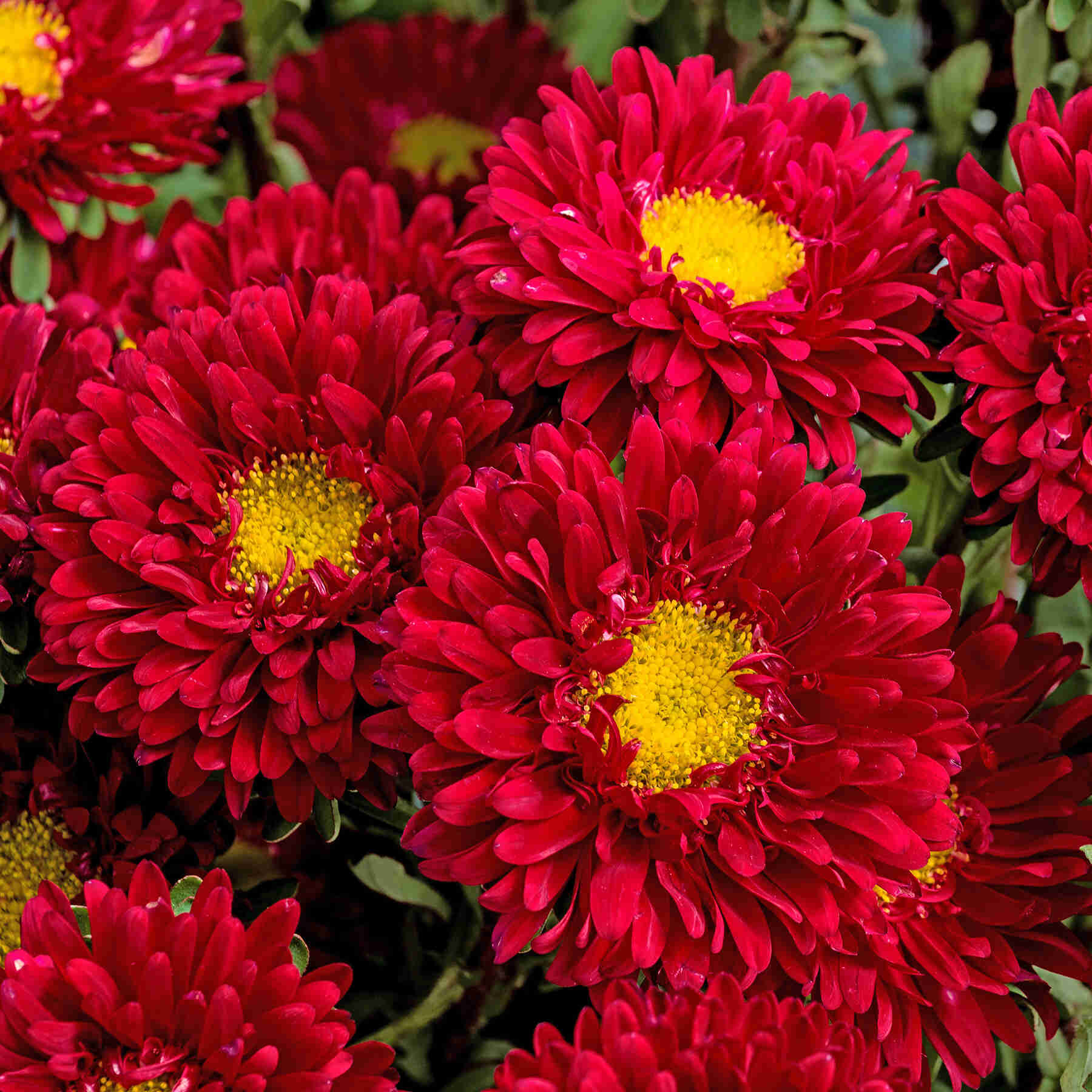Компактная кустовая серия, отличающаяся способностью закладывать бутоны главным образом на верхушках цветоносов. На каждом кусте в период цветения появляется более 70 махровых цветков с отчетливой желтой серединой. Контраст великолепный! Язычковые лепестки расположены по кругу и ориентированы вверх. Кусты изумрудно-зеленые, с ровными плотными стеблями. Толерантны к фузариозу.