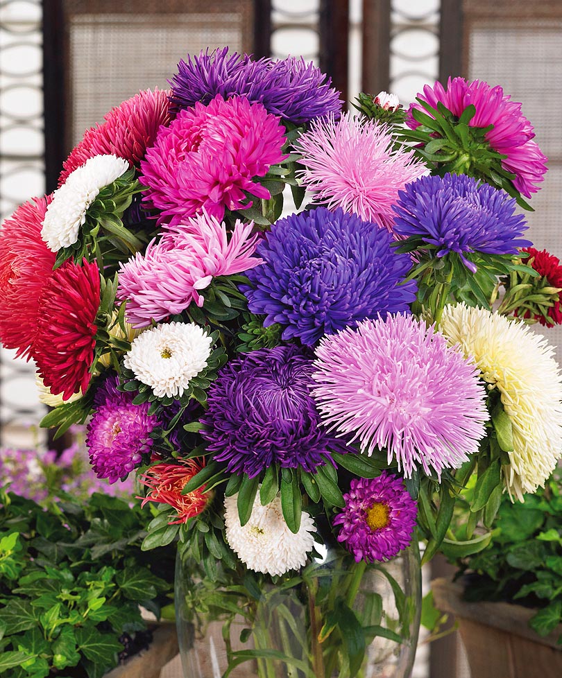 Последовательность подкормок: Первая подкормка – полноценный минеральный комплекс со всеми микроэлементами, вторая подкормка – Карбамид, третья подкормка – Кальциевая селитра, четвертая подкормка МагБор, пятая подкормка – Монофосфат калия, шестая подкормка - Калимаг. Далее повторяем все подкормки в последовательности: с первой по шестую - до середины августа. Интервал между подкормками 5 -7 дней, кому очень некогда, можно кормить раз в 10 дней. С середины августа переходим только на монофосфат и калимаг. Периодичность подкормок. Подкормки в перечисленной последовательности проводят раз в 5 -7 дней. Астры у нас гибридные, а это значит, что выносят они питание быстрее сортовых и, конечно же, устойчивость у гибридной астры ко всем болезням, к неблагоприятным условиям намного выше, чем у ее сортовых собратьев, но… для этого ее нужно и кормить соответственно. Кому сложно соблюдать такую периодичность подкормок, тот может воспользоваться готовыми питательными минеральными комплексами. При выборе питательного раствора нужно учитывать возраст астр. Для маленьких недавно высаженных растений рекомендую купить комплекс с повышенным содержанием азота и кальция. Для астр готовых вступить в фазу цветения нужно выбрать комплекс с повышенным содержанием фосфора, бора и магния, для астр в фазе активного цветения нужно выбрать комплекс с повышенным содержанием фосфора и калия. Чтобы не ошибиться, внимательно читайте состав удобрений. Как вы сами видите, абсолютно ничего сложного в выращивании астр нет и радовать они вас будут своими яркими красками до самого снега. Любоваться астрой можно не только в саду, но и в квартире. Астра отлично подходит для срезки и очень долго, не теряя декоративности, стоит в букетах в вазах с водой.