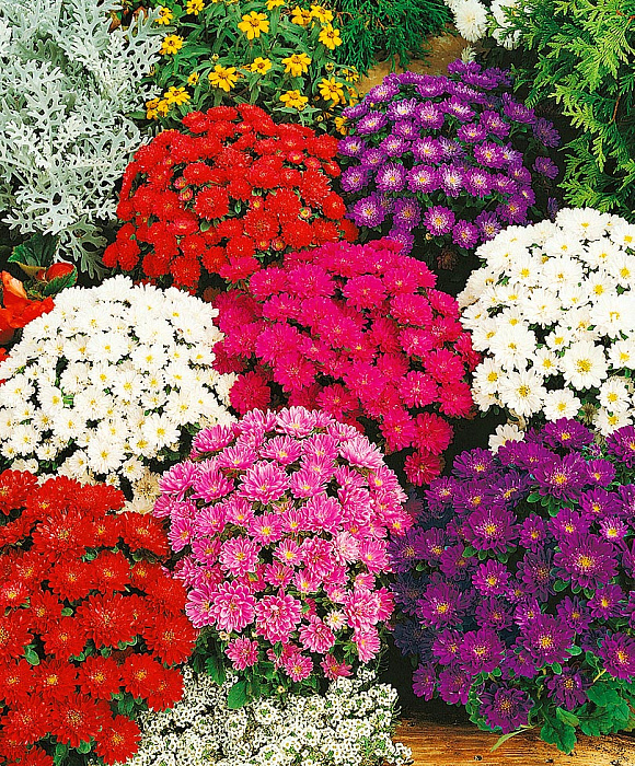 ВЫСАДКА РАССАДЫ АСТРЫ В ЦВЕТНИКИ. Астра – холодостойкий цветок и высаживать ее в цветники и клумбы у нас на Урале можно уже после 20 – 25 мая. Южанам и того раньше, в конце апреля в начале мая. Грунт под астры нужен легкий, воздушный, хорошо заправленный компостом 2 -3 летней давности фосфорно-калийными удобрениями. Категорически запрещается вносить под астры свежий навоз. Астры нельзя высаживать на то же самое место, где росли астры прошлым летом. Схема посадок: 20 см для карликовых астр между кустами, и 30 – 35 см между высокорослыми кустами. Ведь каждый куст формирует от 12 до 30 (в зависимости от вида) мощных цветоноса, а для этого нужна и площадь питания соответствующая и обеспечение светом. При более тесных посадках астры теряют свою декоративность и вытягиваются, при более просторных посадках кусты не поддерживают друг друга и полегают. В течение вегетации уход за астрами заключается в поливах, прополках, рыхлении и подкормках.