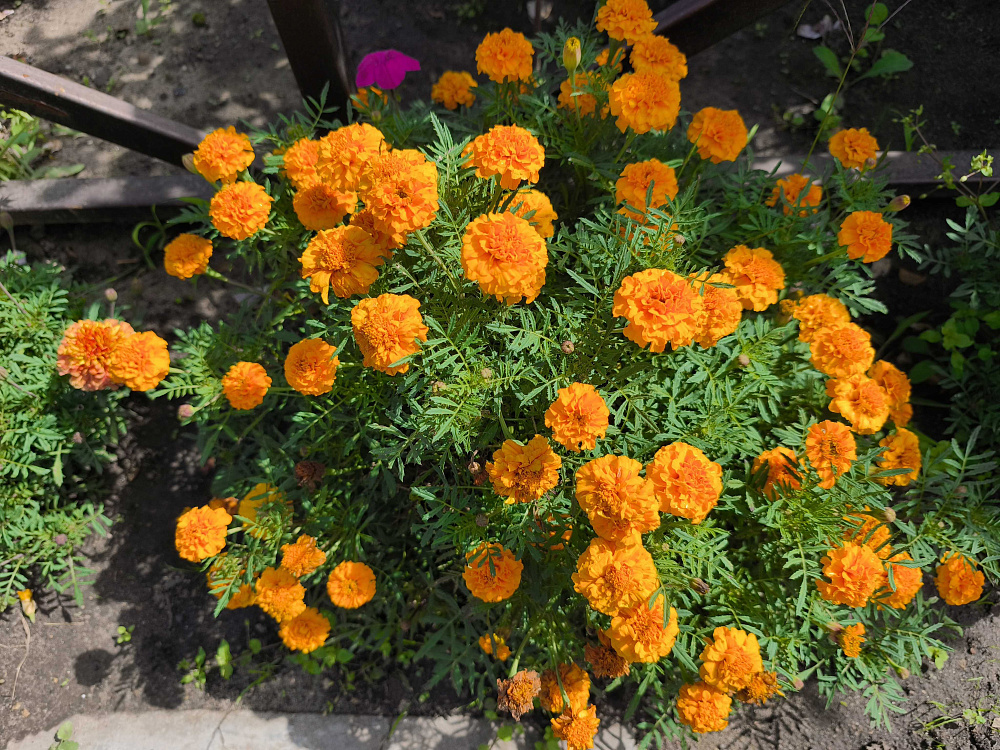 Замечательные бархатцы, кустики разрослись, яркие как мандаринки. Всем советую.