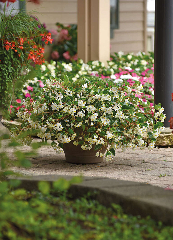 Уникальный ниспадающий габитус с множеством мелких цветков до 4 см в диаметре. Самая ранняя из межвидовых бегоний. Идеальна для подвесных кашпо. Растение наделено сильной энергией роста. Непрекращающееся цветение до поздней осени. Нейтральна к продолжительности светового дня. Неприхотливая и легкая в уходе.