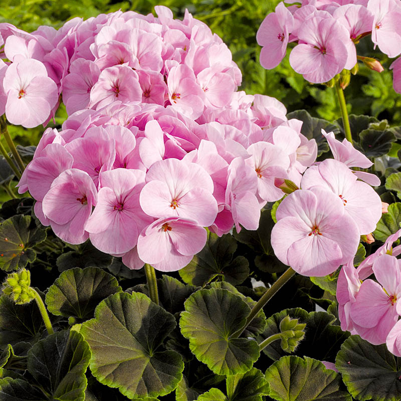 Вас впечатлит цветение этой серии. «Глазастая», выразительная, с крупными цветками, собранными в выпуклые полусферические соцветия. Это, пожалуй, самые крупные соцветия, которые вам довелось видеть. Шаровидные и плотные, они достигают в диаметре 16 см! Листва шоколадного цвета со светло-зеленой каймой. Легко выращивается и долго цветет. Благодаря коротким цветоносам, устойчива к ветру и дождям.