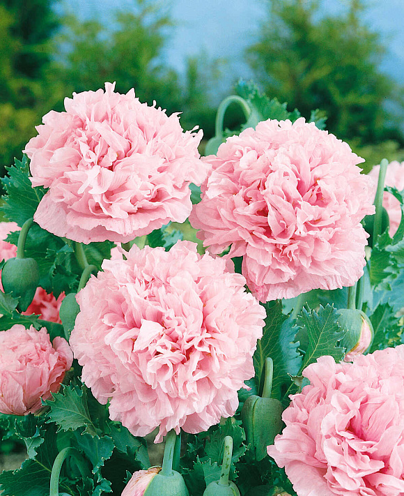 Нежное очарование мака и роскошь махрового пиона подарили нам селекционеры. Пионовидный мак – это растения с мощными кустами, с необыкновенно яркими и красивыми густомахровыми цветками, и отливающими шелком лепестками. Цветки у него до 16 см. в диаметре. Они гипнотизируют, они привлекают, они завораживают своей гордой и какой- то особой независимой красотой. Стебель пионовидного мака прочный, высотой 80 - 100 см., на нем крепко и надежно держится крупный цветок. Папавер с легкостью выдерживает трепку нашими уральскими ветрами.