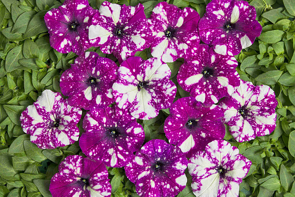 Огни звездного неба, мерцание далеких галактик, что только не угадывается в эффектном узоре лепестков этой удивительной петунии. Сочетание ярких, насыщенных окрасок и белых крапинок придают цветкам совершенно новый и необыкновенно привлекательный вид. Форма, частотность и интенсивность рисунка никогда не повторяется из-за чего каждое растение совершенно уникально. Это первый и единственный сорт петунии с подобной окраской лепестков, который можно совершенно легко вырастить из семян, получив здоровую и сильную рассаду. Растение обладает высокой устойчивостью к неблагоприятным погодным условиям и отличным умением адаптироваться. Даже после сильного дождя кустики способны быстро восстановить свой великолепный внешний вид. Петуния отлично ветвится, пышно и обильно цветет, соцветия крупные, диаметром 6–7 см. Отлично смотрится не только высаженная самостоятельно, но и в сложных цветочных композициях, подойдет для балконных ящиков, кашпо и контейнеров.