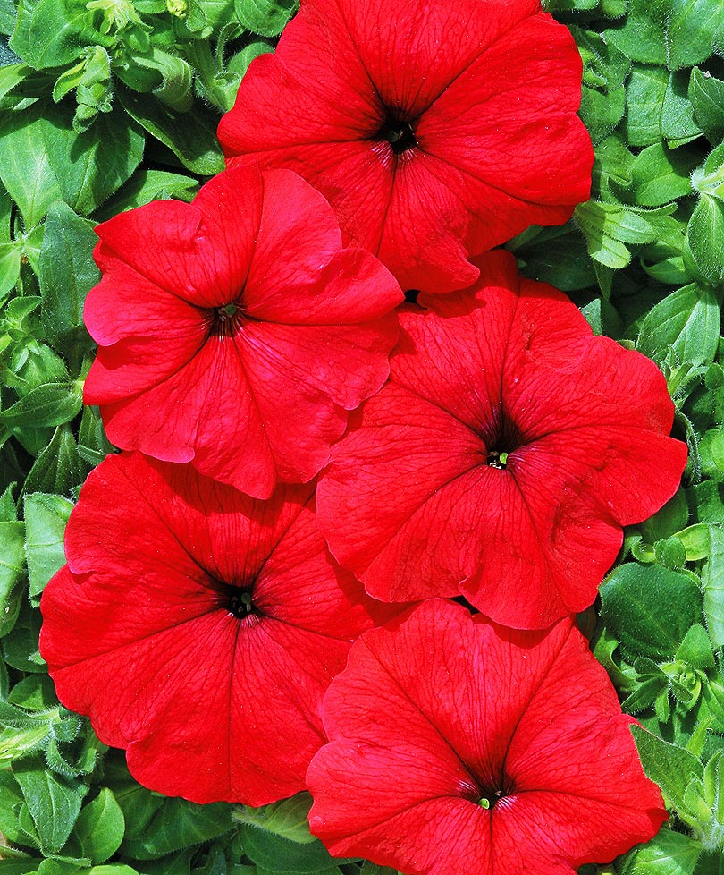 Яркая сочная окраска этой петуньи выгодно выделяется на фоне других цветов. Цветы среднего размера, цветение обильное.