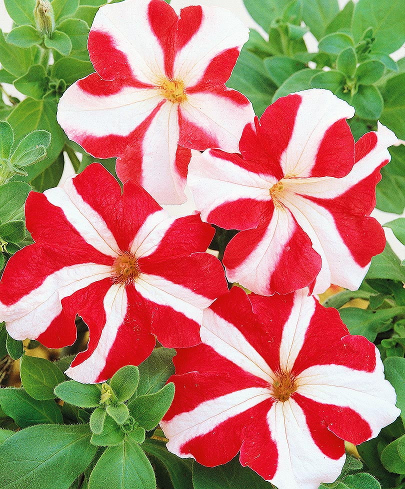 Эта группа занимает лидирующие позиции! Наибольшая гордость крупноцветковой петунии (грандифлора) — это крупные (диаметр 9-13 см!) цветы, простые или махровые с волнистыми краями, окрас от нежных пастельных оттенков до броских цветовых сочетаний. Куст пышный, ветвистый. Отличается ранним, обильным и продолжительным цветением.