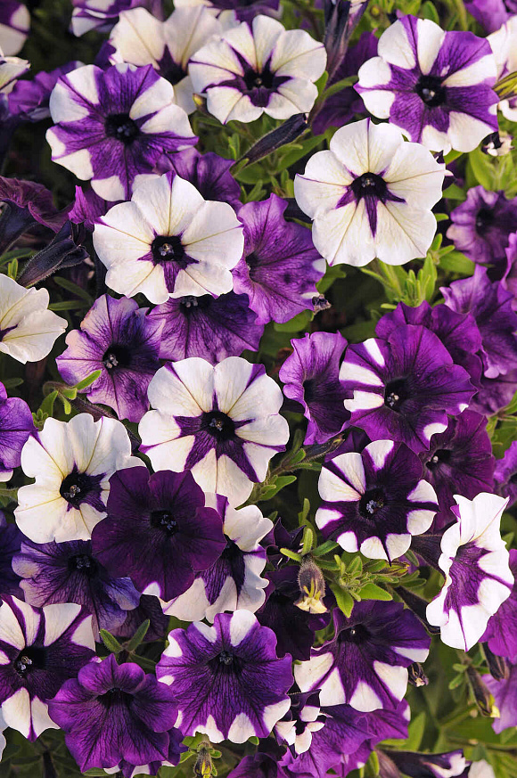 УХОД ЗА ПЕТУНИЕЙ В ГРУНТЕ. Уход за петунией в грунте заключается в регулярных умеренных поливах. В прополках и рыхлении она нуждается до того момента, пока она не заполнит собой сплошным ковром весь отведенный ей участок. Отцветшие цветки нужно своевременно удалять и за сезон несколько раз провести стрижку растений, после каждой стрижки петуния порадует вас вновь обильным кущением и цветением. Подкормки петунии, растущей в грунте в цветниках, нужны раз в 20 -30 дней любым минеральным комплексом для цветочных культур, предпочтительнее кормить по листу. Для петунии в клумбах с ограниченным объемом грунта, например клумба в шине, питание дают раз в 10 -14 дней. Для петуний, высаженных в небольшие кашпо или цветочные горшки, питание дают раз в 7 дней. Объем грунта в цветочном кашпо слишком мал, что бы надолго обеспечить обильное цветение без подкормок. Ампельные петунии любят покушать чаще всех, их кормят раз в 5 дней.