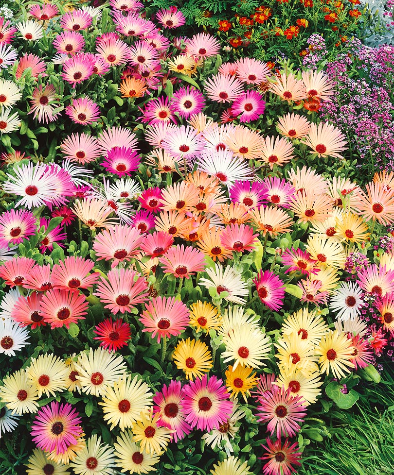 Уникальное растение среди почвопокровных: укрывает плотным ковром даже самые бедные почвы. Цветки по сравнению с габаритами растения огромные, 4 см в диаметре, разнообразной окраски — белые, оранжевые, розовые. Доротеантус светолюбив и не переносит избытка влаги. Выращивают через рассаду.