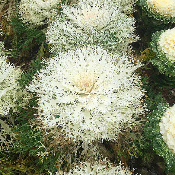 Нерукотворное чудо! В своём умении перевоплощаться огородная барыня-капуста не знает себе равных. Она не только удивит разносолами и накормит весь дом, но и от души порадует великолепием и изяществом форм, потрясающей палитрой осенних красок, умением дарить радость и заряжать оптимизмом в унылое осеннее ненастье. Предлагаем Вам несколько сортов-самоцветов. Все они холодостойкие, выдерживают краткосрочные осенние заморозки, наибольшей декоративности достигают на плодородных, умеренно увлажнённых почвах в условиях достаточной освещённости. Высота растения 20-30 см.