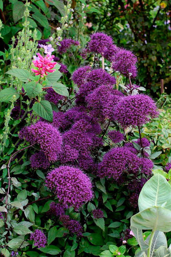 диковинный кустик с крупными, до 15 см, зонтиками крошечных колокольчатых цветочков, источающих тонкий