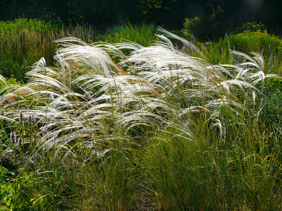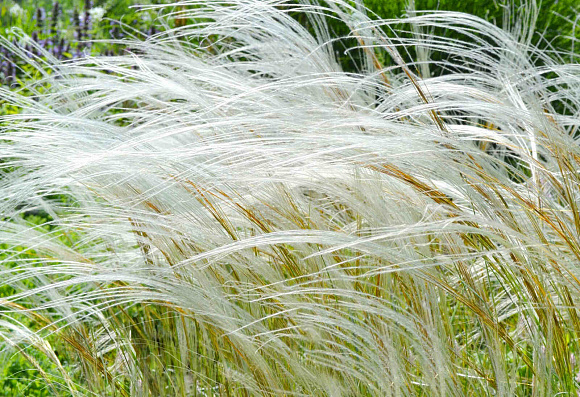 Мягкие шелковистые волны при групповой посадке или фонтаны одиночных растений, колеблющиеся от малейшего ветерка, одинаково завораживают. Узкие сизо-зелёные листья и светлая, сильно опушенная метёлка длиной 30 см.