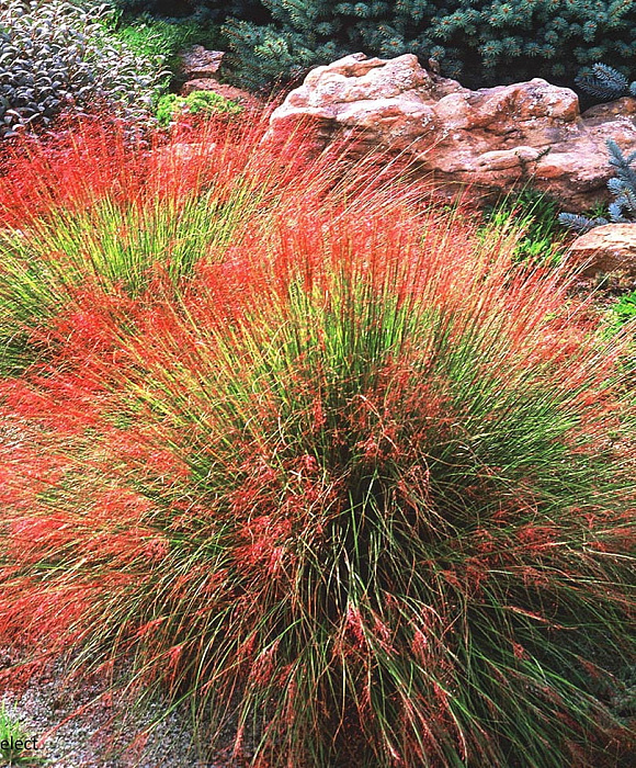 Один из самых красивых злаков – с плотным компактным кустом до 50 см высотой и нежными розово-малиновыми воздушными колосками, которые появляются осенью, и даже высыхая, всю зиму остаются декоративными. Стойкий к любым условиям и простой в уходе.