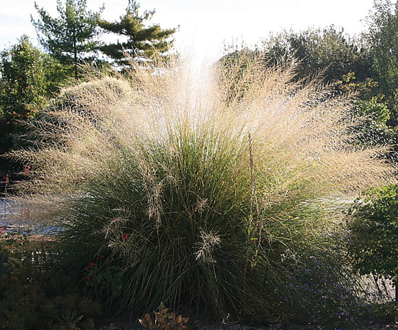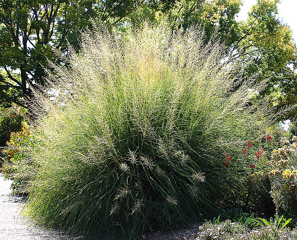 Рослый крупный куст. Зацветает в середине лета. Высокие серо-зелёные стебли с воздушным облачком пушистых светлых или чуть бронзовых колосков. Посадка в качестве солитера или группой, как фон для других растений. Засухоустойчивый.