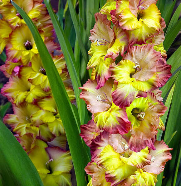 Гладиолусы начинают цвести уже «под занавес», во второй половине лета и, как будто извиняясь за задержку, приносят в дар великолепную гармонию красок, оттенков и причудливых, изысканных форм.