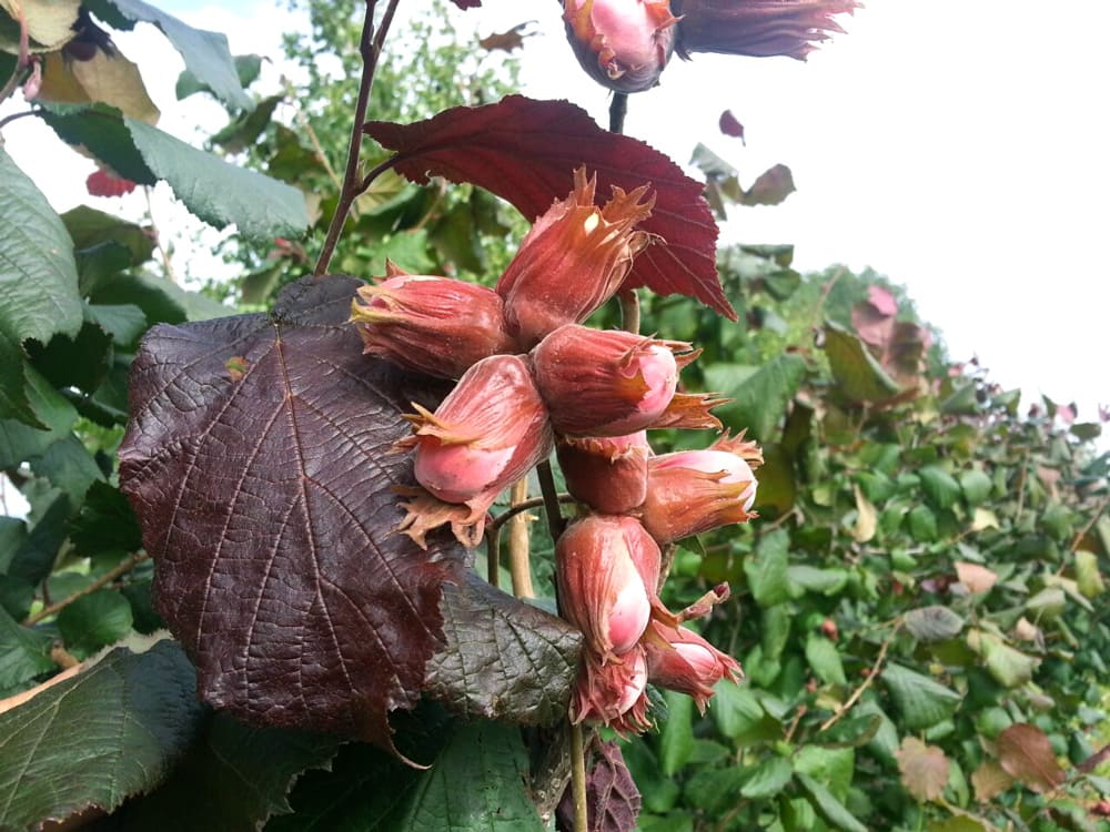 Великолепный сорт фундука сибирской селекции. Уже на 4 год вы получите до 7 кг вкуснейших и полезных орехов! Растет в форме куста высотой до 3,5 метров с красивейшими красными листьями. Листья сердцевидные, очень красивые, темно-бордового цвета, темнеющие к осени. Хорошо зимует, устойчив к болезням и вредителям. Плоды поспевают в августе. Лучший опылитель – сорт «Лентина».