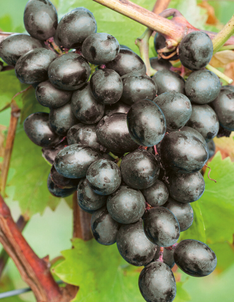 Как много достоинств заключено в одном сорте! Отличительной особенностью является полное вызревание побегов по всей длине уже к началу августа. Это просто находка для регионов с коротким летом, ведь помимо ранней отдачи урожая полностью вызревшая лоза более уверенно уходит под зиму и переносит морозы. Чарли – высокоурожайный сорт-трудяга, уже на 2-й год он способен образовать и довести до полного созревания 3–4 грозди массой до 1 кг и более каждая. Сорт крайне плодовитый, не склонен к горошению. Легко переносит весенние заморозки, сильные дожди и даже град. Ягоды овальные, густо-сине-фиолетовые до черноты, массой 7–10 г, не подвержены гнили. Мякоть мясистая, плотная, деликатесного фруктового вкуса. Сорт устойчив к многочисленным грибковым заболеваниям.